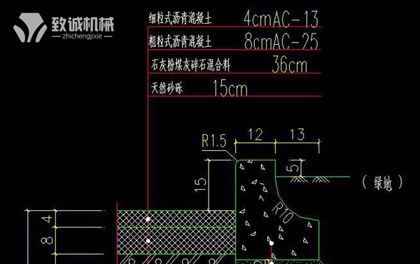 圖紙如下:由于路面上的8公分粗粒式瀝青混凝土和4公分細(xì)粒式瀝青混凝土均未施工,所有右側(cè)L型路沿石30公分高需直立于地面。