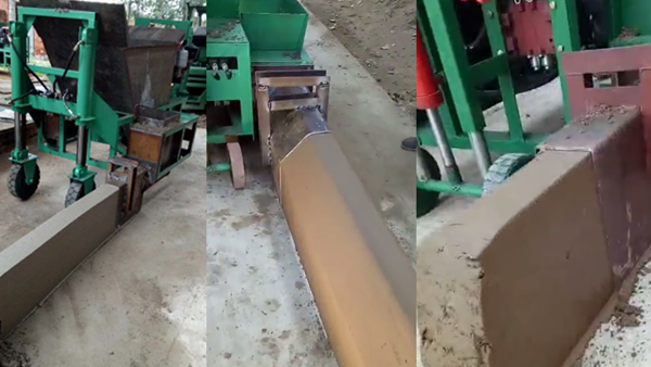 擠壓式路沿石成型機作業原理:利用機器螺旋桿攪拌,進行擠壓產生動力,使機器前行并且擠出路緣石滑模的料,成型后鑲嵌到地面上,靠螺旋緩轉力擠出成型。成型后的路沿石與地面產生的推力使機器向前行走。